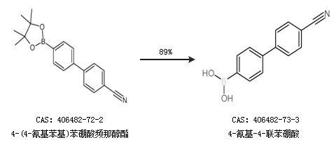 1.通过4-(4-氰基苯基)苯硼酸频那醇酯合成4-氰基-4-联苯硼酸,收率约89%;