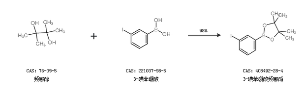 2.通过频哪醇和3-碘苯硼酸合成3-碘苯硼酸频哪酯,收率约98%;