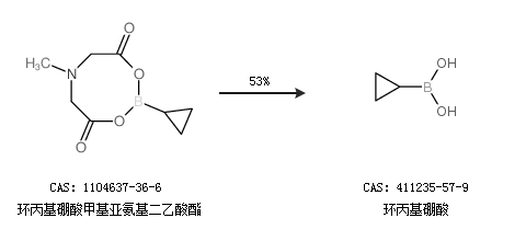 2.通过环丙基硼酸甲基亚氨基二乙酸酯合成环丙基硼酸,收率约53%;