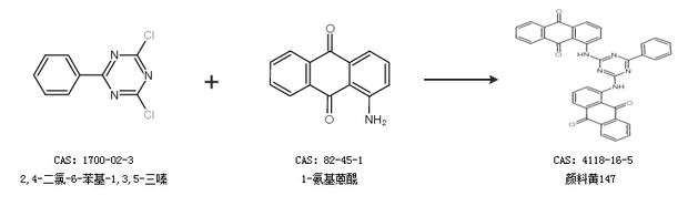 1.通过2,4-二氯-6-苯基-1,3,5-三嗪和1-氨基蒽醌合成颜料黄147