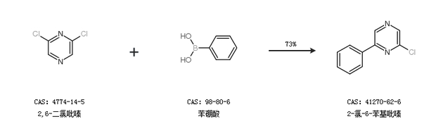 1.通过2,6-二氯吡嗪和苯硼酸合成2-氯-6-苯基吡嗪,收率约73%;