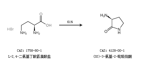 2.通过L-2,4-二氨基丁酸氢溴酸盐合成(3S)-3-氨基-2-吡咯烷酮,收率约61%;