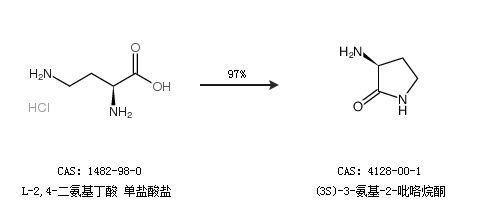 1.通过L-2,4-二氨基丁酸 单盐酸盐合成(3S)-3-氨基-2-吡咯烷酮,收率约97%;