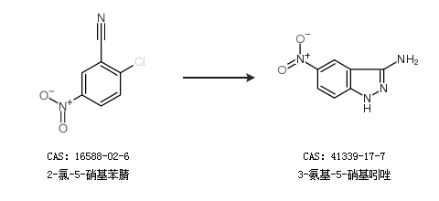 2.通过2-氯-5-硝基苯腈合成3-氨基-5-硝基吲唑