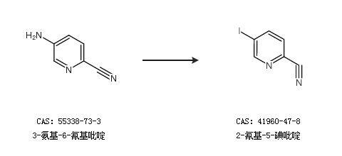 1.通过3-氨基-6-氰基吡啶合成2-氰基-5-碘吡啶