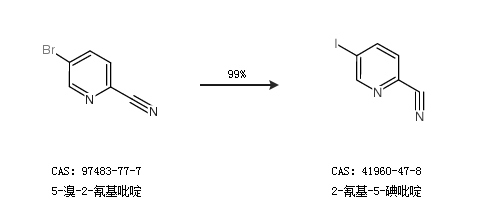 2.通过5-溴-2-氰基吡啶合成2-氰基-5-碘吡啶,收率约99%;