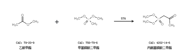 2.通过乙酸甲酯和甲基膦酸二甲酯合成丙酮基膦酸二甲酯,收率约57%;