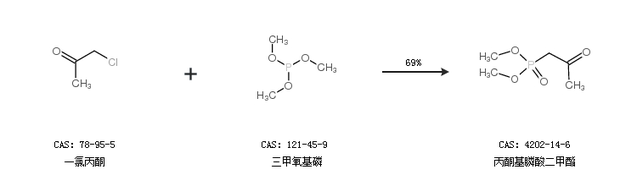 1.通过一氯丙酮和三甲氧基磷合成丙酮基膦酸二甲酯,收率约69%;