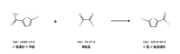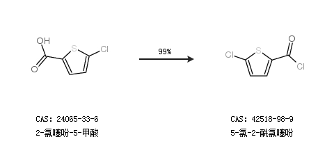 1.通过2-氯噻吩-5-甲酸合成5-氯-2-酰氯噻吩,收率约99%;