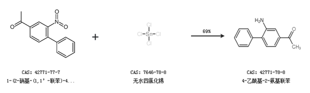 1.通过1-(2-硝基-(1,1’-联苯)-4-基)乙酮和无水四氯化锡合成4-乙酰基-2-氨基联苯,收率约69%;
