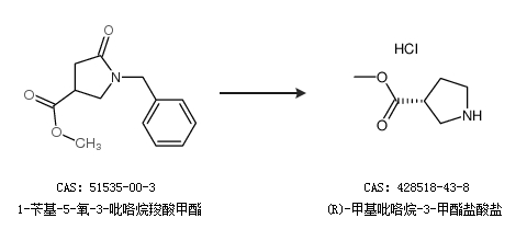 1.通过1-苄基-5-氧-3-吡咯烷羧酸甲酯合成(R)-甲基吡咯烷-3-甲酯盐酸盐