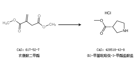 2.通过衣康酸二甲酯合成(R)-甲基吡咯烷-3-甲酯盐酸盐