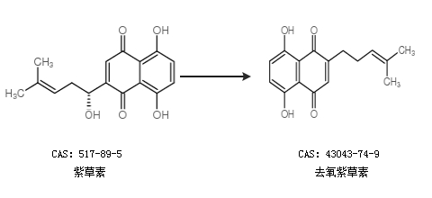 中文别名 5,8-二羟基-2-(4-甲基-3-苯基)-1,4-萘二酮;去氧紫根素;