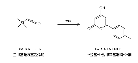 1.通过三甲基硅烷基乙烯酮合成4-羟基-6-对甲苯基吡喃-2-酮,收率约79%;
