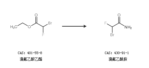 1.通过溴氟乙酸乙酯合成溴氟乙酰胺,收率约83%;