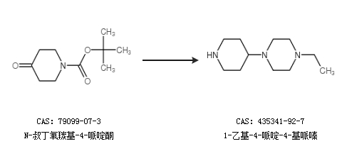 2.通过N-叔丁氧羰基-4-哌啶酮合成1-乙基-4-哌啶-4-基哌嗪