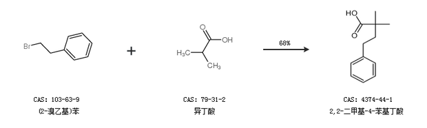 1.通过(2-溴乙基)苯和异丁酸合成2,2-二甲基-4-苯基丁酸,收率约68%;