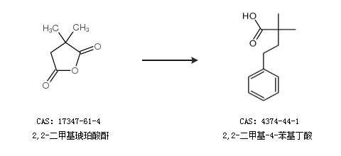 2.通过2,2-二甲基琥珀酸酐合成2,2-二甲基-4-苯基丁酸