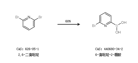 1.通过2,6-二溴吡啶合成6-溴吡啶-2-硼酸,收率约68%;