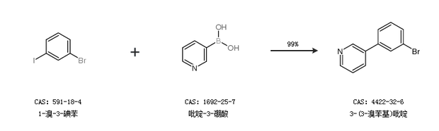 1.通过1-溴-3-碘苯和吡啶-3-硼酸合成3-(3-溴苯基)吡啶,收率约99%;