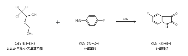 1.通过2,2,2-三氯-1-乙氧基乙醇和4-氟苯胺合成5-氟靛红,收率约62%;