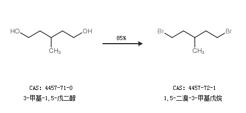 1.通过3-甲基-1,5-戊二醇合成1,5-二溴-3-甲基戊烷,收率约85%;