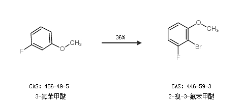 2.通过3-氟苯甲醚合成2-溴-3-氟苯甲醚,收率约36%;