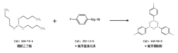 1.通过硼酸三丁酯和4-氟苯基溴化镁合成4-氟苯硼酸酐