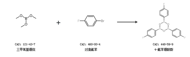 2.通过三甲氧基硼烷和对溴氟苯合成4-氟苯硼酸酐
