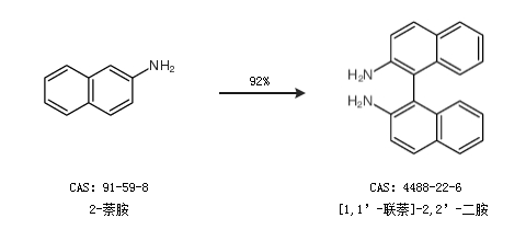 1.通过2-萘胺合成[1,1’-联萘]-2,2’-二胺,收率约92%;