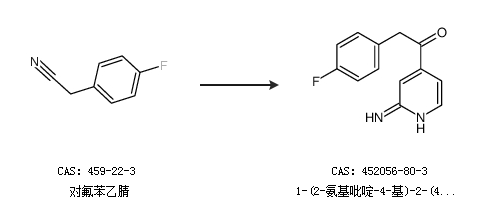2.通过对氟苯乙腈合成1-(2-氨基吡啶-4-基)-2-(4-氟苯基)-乙酮