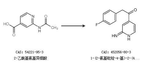 1.通过2-乙酰基氨基异烟酸合成1-(2-氨基吡啶-4-基)-2-(4-氟苯基)-乙酮