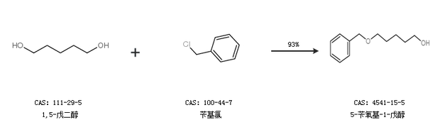 2.通过1,5-戊二醇和苄基氯合成5-苄氧基-1-戊醇,收率约93%;