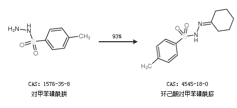 1.通过环己酮和对甲苯磺酰肼合成环己酮对甲苯磺酰腙,收率约99%;