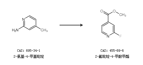 2.通过2-氨基-4-甲基吡啶合成2-氟吡啶-4-甲酸甲酯