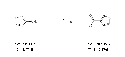 1.通过3-甲基异噻唑合成异噻唑-3-羧酸,收率约13%;