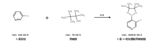1.通过3-氯吡啶和频哪醇合成3-氯-4-吡啶硼酸频哪醇酯,收率约51%;
