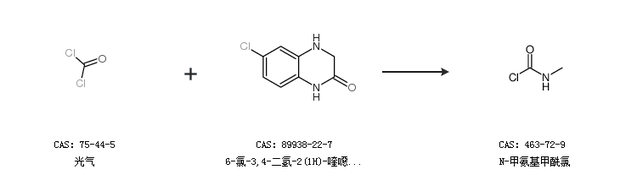 2.通过光气和6-氯-3,4-二氢-2(1H)-喹噁啉酮合成N-甲氨基甲酰氯