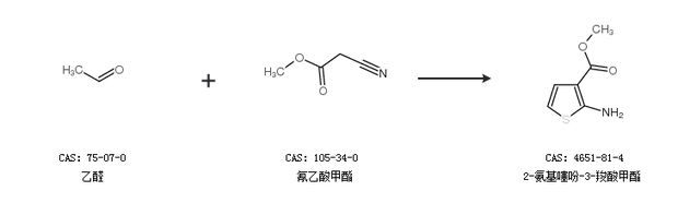 2.通过乙醛和氰乙酸甲酯合成2-氨基噻吩-3-羧酸甲酯