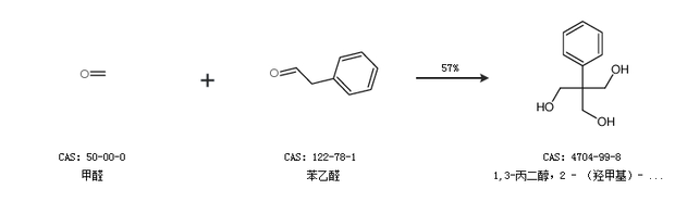 1.通过甲醛和苯乙醛合成1,3-丙二醇,2 - (羟甲基)- 2 -苯基,收率约57%;
