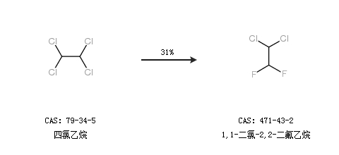 1.通过四氯乙烷合成1,1-二氯-2,2-二氟乙烷,收率约31%;