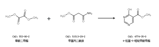 1.通过草酸二甲酯和甲基丙二酰胺合成4-羟基-5-嘧啶甲酸甲酯