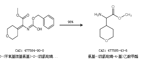 1.通过2-(苄氧基羰基氨基)-2-(四氢吡喃-4-基)乙酸甲酯合成氨基-(四氢吡喃-4-基)乙酸甲酯,收率约98%;