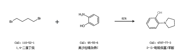 1.通过1,4-二溴丁烷和美沙拉嗪杂质C合成2-(1-吡咯烷基)苯酚,收率约82%;