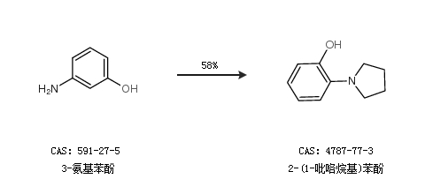 2.通过3-氨基苯酚合成2-(1-吡咯烷基)苯酚,收率约58%;