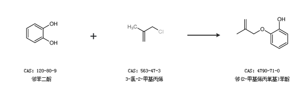 1.通过邻苯二酚和3-氯-2-甲基丙烯合成邻(2-甲基烯丙氧基)苯酚