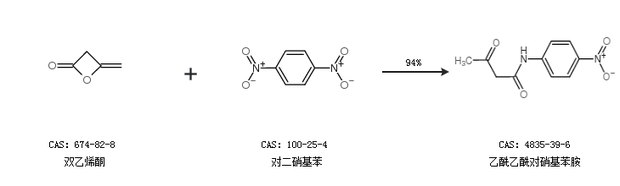 2.通过双乙烯酮和对二硝基苯合成乙酰乙酰对硝基苯胺,收率约94%;