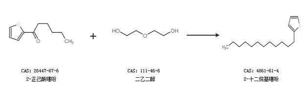 2.通过2-正己酰噻吩和二乙二醇合成2-十二烷基噻吩