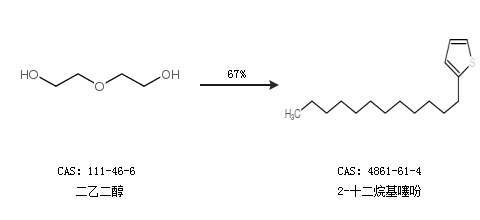 1.通过二乙二醇合成2-十二烷基噻吩,收率约67%;
