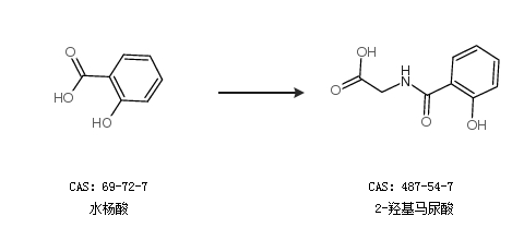 英文别名 2-Hydroxyhippuric acid;2-HYDROXYHIPPURIC ACID;2-[(2-hydroxybenzoyl)amino]acetic acid;